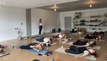 Wenn du die Sequenz selbst durchlaufen hast, nimm dir ein paar ruhige Minuten, um sie mental durchzugehen. Stelle dir vor, wie die Stunde abläuft - vom Atem über die Bewegungen bis hin zum Thema. So kannst du beim Unterrichten klar und geerdet bleiben.