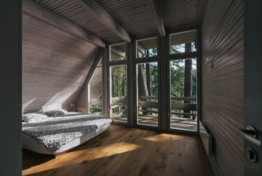 Die Zimmer sind mit großen, bequemen Betten ausgestattet und verfügen über große Fenster, die den Raum mit natürlichem Licht füllen und einen atemberaubenden Blick in den Wald bieten. Unser gemütlicher Lounge- und Essbereich mit Sofas und Kamin lädt zum Entspannen und Schmökern ein. Draußen erwarten dich Holzterrassen mit Liegestühlen und Hängematten, die zum Relaxen einladen.