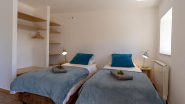 Our accommodation offers a charming, rustic setting with modern comforts. The fully renovated house features eight beautiful double rooms, each with its own ensuite bathroom. The design is minimalist yet elegant, with each room retaining its own character while offering the same features for your comfort. Each room has two separate beds (that can also be joined together).