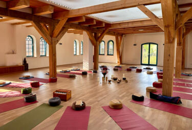 The seminar house within this beautifully restored water mill provides a sanctuary for workshops and retreats focused on personal growth and development, offering a peaceful space for deep concentration and transformative mind-body practices.